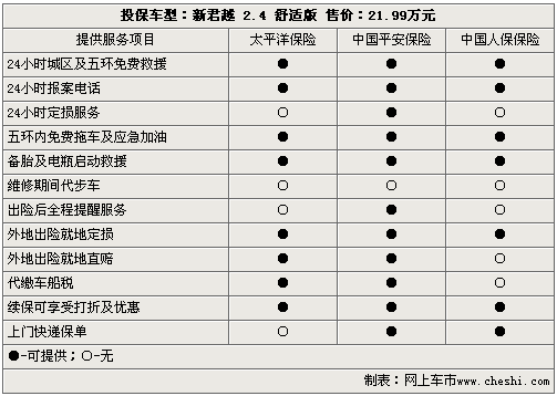 消費(fèi)者在購買車輛保險(xiǎn)獲得車輛安全保障的同時(shí),各保險(xiǎn)公司還提供了額外的免費(fèi)服務(wù)項(xiàng)目。對于經(jīng)常在城區(qū)行駛的消費(fèi)者,選擇提供五環(huán)內(nèi)車輛故障免費(fèi)拖車以及應(yīng)急送油服務(wù)的保險(xiǎn)公司則能帶來許多便利;若消費(fèi)者喜歡經(jīng)常外出跨省自駕游,則選擇可異地定損、理賠的保險(xiǎn)公司。各保險(xiǎn)公司提供了豐富的附加服務(wù),使得消費(fèi)者有了更多樣的選擇,相較而言中國人保提供的人性化服務(wù)并不是很多。比較遺憾的是這三家保險(xiǎn)公司在維修期間均沒有為消費(fèi)者提供代步車的服務(wù)。