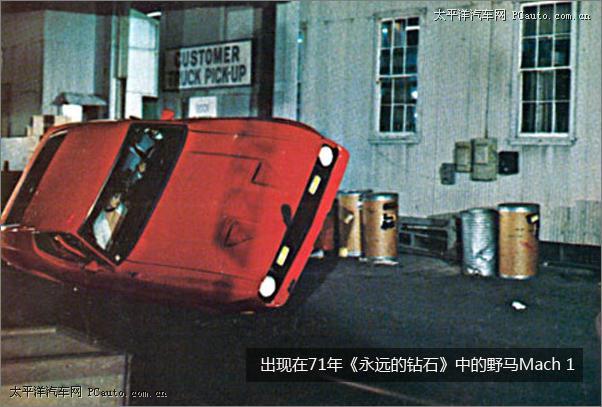 個(gè)人感覺(jué)相比64、65年的敞篷野馬,71年的《永遠(yuǎn)的鉆石》中福特野馬Mach 1讓人印象更加深刻。在逃脫以后,邦德在拉斯維加斯上了Tiffany Case的這輛車;他用它來(lái)逃脫拉斯維加斯警察的追捕(除了拉斯維加斯警察局的車為1970年產(chǎn)福特之外,其他警車,包括安全部隊(duì)的車都是1971年產(chǎn)福特Custom 500。)此外,Mach 1甚至還出現(xiàn)在了1973年的蝙蝠俠漫畫中。