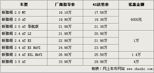 據(jù)4S店銷售人員介紹,目前購買新雅閣各款車優(yōu)惠金額有差別。2.0排量車型購車可優(yōu)惠現(xiàn)金6000元,優(yōu)惠完車價最低為17.58萬,但這款現(xiàn)車不多,2.0自動檔兩款有黑色、銀色等供應(yīng)。除此之外,2.4排量三款車優(yōu)惠現(xiàn)金1萬元,高配則能給出1.4萬優(yōu)惠,3.5排量仍然現(xiàn)車緊張,需要預(yù)訂。訂車后仍能享受優(yōu)惠,最高優(yōu)惠4萬元。
