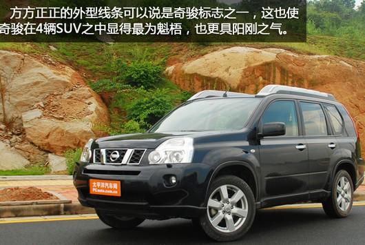 奇駿的方方正正的外型線條已經(jīng)是它的標(biāo)志之一,從上一代車型上沿用下來(lái)的設(shè)計(jì)元素使得第二代奇駿也很富越野的風(fēng)格,F(xiàn)款車型的鍍鉻大型中網(wǎng)以及梯形的大燈,使奇駿車頭相當(dāng)?shù)木哂袣鈩?shì)。同樣是因?yàn)榉秸耐庑途條,令奇駿在4輛SUV之中顯得最為魁梧,也更具陽(yáng)剛之氣,所以我估計(jì)奇駿起碼有8成都是男性車主,不知道是否大家同意我的看法?