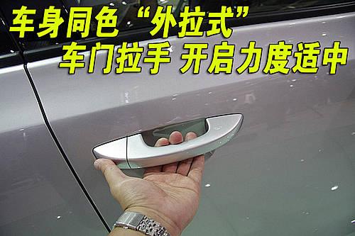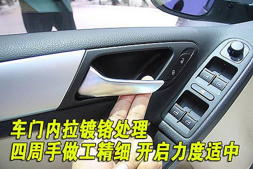 第六代高爾夫四只車門拉手都噴上了與車身同色的車漆,開啟車門時發(fā)現(xiàn)車門拉手部分做工比較細(xì)致。