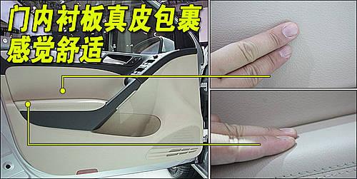 車門襯板采用了真皮作為材料,手感很軟,當(dāng)駕駛者把肘部放上去時不會有生硬的感覺。
