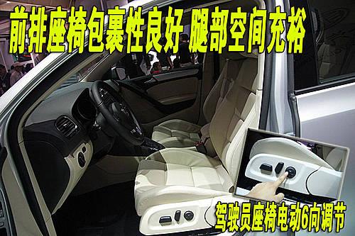 第六代高爾夫整車座椅均采用真皮材料,駕駛席座椅前后、靠背角度、座椅高度為電動(dòng)調(diào)節(jié)。各按鈕四周做工較細(xì)致,但感覺比較松垮。乘坐時(shí)可以感覺到前排座椅對(duì)于背部的支撐與包裹十分到位,同時(shí)前排座椅坐墊長度也很合適,對(duì)大腿部分的支撐充足。
