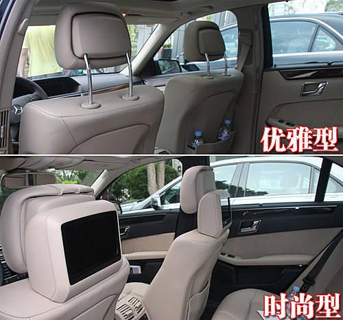 奔馳新E300優(yōu)雅型和時尚型除內(nèi)飾條材質(zhì)差異外,全車真皮坐椅的剪裁也略有差異。奔馳新E300優(yōu)雅型作為入門級車型,全車真皮坐椅采用縱向條紋設(shè)計,而奔馳新E300時尚型則采用橫向條紋設(shè)計。