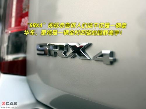 轉(zhuǎn)到車尾,和上一代SRX上的表示不同,尾部立式LED剎車燈旁出現(xiàn)了“SRX4”的標(biāo)示,“4”的字體比車型代號小了不少,這應(yīng)該就是新SRX全時四驅(qū)的獨特標(biāo)志,也告訴人們這不僅是一輛豪華車,更將是一輛全時四驅(qū)的越野高手!