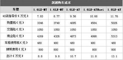 日常用車(chē)過(guò)程中還會(huì)產(chǎn)生一些意外費(fèi)用和非固定支出費(fèi)用,如交通違章,汽車(chē)修理費(fèi)用等,這部分不可預(yù)知的費(fèi)用我們暫且定為1000元。那么綜合以上的分析可以看出新凱越一年的用車(chē)成本在1.8萬(wàn)元到2.2萬(wàn)元之間。