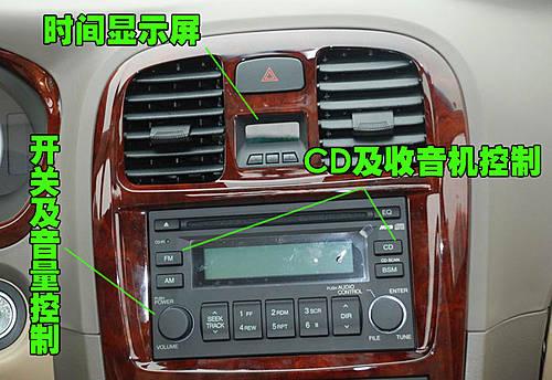 名馭的音響控制區(qū)域上方位置配備了時(shí)間顯示屏幕,并可以手動(dòng)調(diào)節(jié)。單碟CD以及收音機(jī)功能控制均有配備。按鍵使用時(shí)操作比較方便。