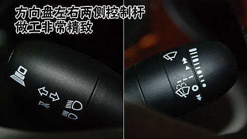 名爵MG 7L方向盤左右的兩側(cè)控制桿為塑料材質(zhì),該部分模具材料的工藝質(zhì)量比較精致,手感還算舒適。