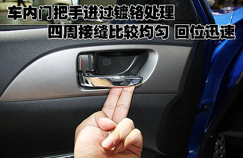 斯巴魯翼豹四只車門拉手的顏色都與車身同色,開啟車門時發(fā)現(xiàn)車門拉手部分做工比較細致,無任何松垮感覺。