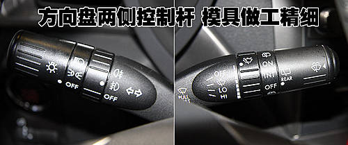 方向盤左右兩側(cè)控制桿為塑料材質(zhì)。無論是看上去還是觸摸時都能感覺到這部分材料的工藝質(zhì)量很好。