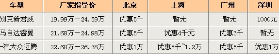 競(jìng)爭(zhēng)車型:別克新君威、馬自達(dá)睿翼和一汽大眾邁騰