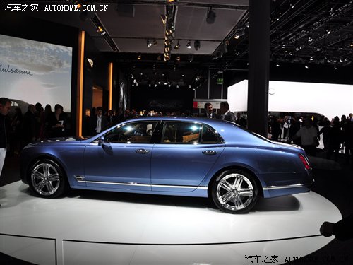 賓利的Mulsanne是原先Arnage系列的替代車型,這個優(yōu)雅的名字來自于24小時Le Mans耐力賽賽道一個彎道的名字。新車的車頭造型比老款更為夸張,原先經(jīng)典的4圓燈設(shè)計被碩大的近、遠(yuǎn)光一體的氙氣燈所取代,兩個小燈被設(shè)計在了旁邊,但是整體造型依然紳士。