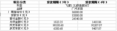 貸款詳解:飛度是小型家用車的典范,這點從它的銷量上就能看出來。缺點么,可能就是大家比較關心的安全和價錢問題。總體來說,飛度綜合素質(zhì)較高,是第一臺車的好選擇。該車首付需2萬余元,月供僅需1400余元,對于手頭緊張的消費者來說還是比較劃算的。