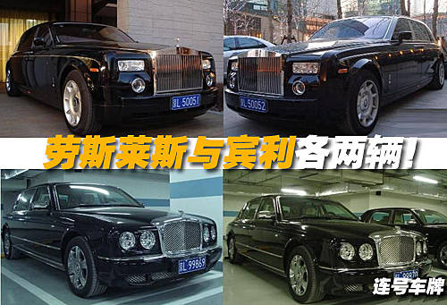 除此之外,黃光裕還擁有兩輛黑色的勞斯萊斯-幻影Phantom,兩輛黑色的賓利-雅致Arnage并且車牌的尾數都是連著的。除去其它車型不說,就這四輛車的價值就已經超過了2000萬元人民幣了。