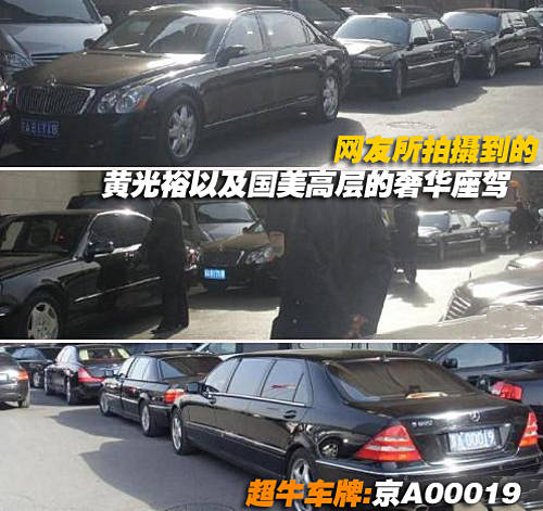 有網友爆料,在昆侖飯店拍到黃光裕等國美高層的“奢侈級”加長豪華轎車,包括黃光裕的邁巴赫62(據傳擁有兩輛),梅賽德斯-奔馳S600普爾曼等平時很難得一見的車型。可見有多么的“拉風”!