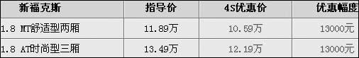 兩廂福克斯最高優(yōu)惠1.3萬元