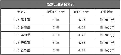 新旗云最低僅售4.28萬(wàn)