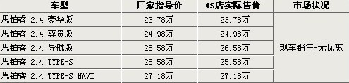 據(jù)東風(fēng)本田4S店銷(xiāo)售人員介紹,目前思鉑睿全系車(chē)型均以到店,但車(chē)型顏色比較單一。思鉑睿全系提供了塔夫綢白、彩晶黑、鈦金銀、炫影藍(lán)、炫動(dòng)紫五種外觀顏色,以及靜雅黃、靜逸黑兩種內(nèi)飾顏色供消費(fèi)者選擇。TYPE-S車(chē)型還推出炫速紅專用色。售后保養(yǎng)方面制定整車(chē)三年十萬(wàn)公里的保修政策,提供3個(gè)月/5000公里的易損件保修服務(wù)。