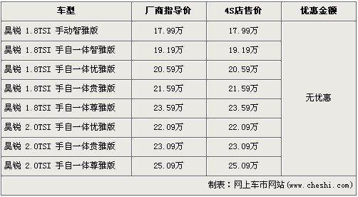 據4S店銷售人員介紹:目前明銳全系最高優(yōu)惠9000元,1.6升及1.8TSI車型優(yōu)惠減少,尤其1.8TSI車型由原來的8500元降至5000元。2.0升目前優(yōu)惠9000元,優(yōu)惠幅度很大,并且2.0升車型有現車,顏色包括銀色、灰色車型。1.6升車型全系現車少,如需預定最短等待1個月,最長需等3個月時間。目前1.6升車型優(yōu)惠達5000元,1.8TSI的兩款車型優(yōu)惠5000元。如在店內做裝飾還可打8折,雖然折后裝飾價格仍有些偏高,但產品質量可以保證。