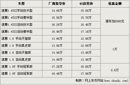 速騰全系最高優(yōu)惠1萬元 1.4TSI加價提車