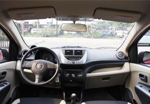 新奧拓的內(nèi)飾部分由淺米色和灰色兩種顏色拼接而成,雙色座椅、黑色真皮方向盤都能體現(xiàn)出一股時(shí)尚運(yùn)動(dòng)感。中控臺(tái)是塑料材質(zhì)的,感覺(jué)很廉價(jià),但做工卻非常精細(xì)。