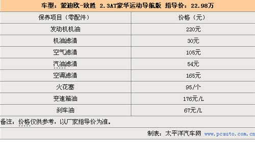 致勝首保為5000公里,之后每1萬公里保養(yǎng)一次。保修期限內,致勝車主可享受四次免費更換發(fā)動機機油和機油濾清器的服務,因此保養(yǎng)花費會相對減少。致勝每次小保養(yǎng)費用為312元,空氣濾清器和汽油濾清器都是每10 000 km更換一次。由于致勝剛上市不久,所以并沒有更為詳盡的保養(yǎng)價格。在購買致勝的時候,長安福特有贈送4次免費更換機油機濾保養(yǎng)的政策,因此按這樣計算的話,2萬km之內的保養(yǎng)花費會比較少。