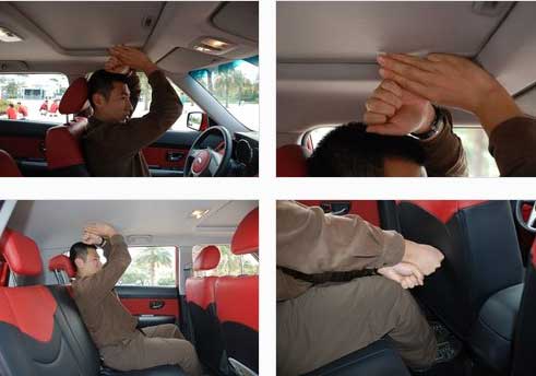 一臺不足4.1米軸距2.55米的小車內(nèi)部空間如何?上面既是答案。模特身高1.75米左右,在他與駕駛席正常的駕駛坐姿下,后排空間同樣可以坐下身高在1.75米左右的成員,而且空間仍然有一拳以上,前后排頭部的空間也因為較高的車頂設(shè)計而得到擴大,完全不會感覺到乘坐不適。