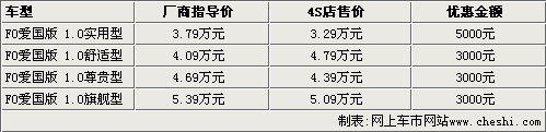 比亞迪F0目前在4S店的銷售價(jià)格比上周有所提高,其中實(shí)用型可以優(yōu)惠5000元,而其他三款車型都可以優(yōu)惠3000元。目前比亞迪F0實(shí)用型和舒適型現(xiàn)車比較齊全,尊貴型和旗艦型有部分顏色需要預(yù)訂。為了慶祝比亞迪F0上市一周年,首次嘗試了拍賣銷售活動(dòng),消費(fèi)者可以在現(xiàn)場(chǎng)通過競拍,以最優(yōu)惠的價(jià)格購買比亞迪F0。據(jù)了解,比亞迪F0拍賣活動(dòng)有很多成交價(jià)格都低于廠商指導(dǎo)價(jià)7000-8000元,比目前市場(chǎng)最低價(jià)格也低2000-5000元左右。