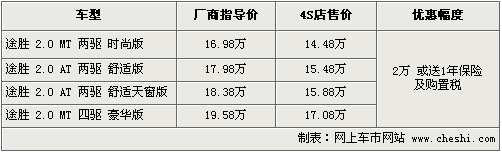 據(jù)北京現(xiàn)代北京地區(qū)4S店銷售人員介紹,途勝車型優(yōu)惠現(xiàn)金2萬元或贈送購置稅及全年保險,兩項優(yōu)惠只能選擇其一。目前店內(nèi)現(xiàn)車供應(yīng)主要為銀色、黑色為主,四驅(qū)部分車型需要預(yù)訂,訂金5千元,一周左右時間可以提車。如消費者有意購買,到店詳談會有更優(yōu)惠的價格。北京地區(qū)各4S店由于訂單不同,各店銷售的現(xiàn)車顏色有所不同。
