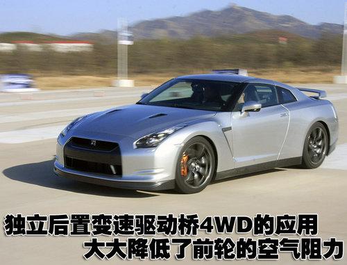 日產(chǎn)專門(mén)為GT-R開(kāi)發(fā)了世界上第一個(gè)獨(dú)立后置變速驅(qū)動(dòng)橋4WD,通過(guò)碳纖維推進(jìn)器與尾部驅(qū)動(dòng)裝置相結(jié)合,同時(shí)降低整車(chē)的中心,從而大大降低了前輪的空氣阻力;采用了大直徑缺氣保用輪胎,增加輪胎抓地面積;同時(shí),電腦控制6擋雙離合變速器、新型的懸掛系統(tǒng)、強(qiáng)大的制動(dòng)系統(tǒng)、完美平衡四輪負(fù)載,改善了轉(zhuǎn)彎的效能和穩(wěn)定性。