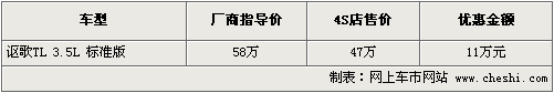 據(jù)謳歌4S店銷售人員介紹,目前謳歌TL在原來(lái)車型的基礎(chǔ)上增加選裝運(yùn)動(dòng)禮包,如加裝需要繳納4萬(wàn)元,可將豪華版升級(jí)為運(yùn)動(dòng)版車型,運(yùn)動(dòng)版車型更換18寸輪轂及輪胎,并增加了擋泥板、雨擋等套件,F(xiàn)在消費(fèi)者購(gòu)車最高可優(yōu)惠現(xiàn)金11萬(wàn)元,優(yōu)惠后售價(jià)僅為47萬(wàn)元。目前TL普通版的現(xiàn)車較為齊全,并且有多款內(nèi)飾顏色可供挑選。如消費(fèi)者有意購(gòu)買,到店詳談會(huì)有更優(yōu)惠的價(jià)格。北京地區(qū)各4S店由于訂單不同,各店銷售的現(xiàn)車顏色有所不同。