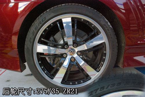 2010款雪佛蘭Camaro全系共分為5款車型,除了最低配車型配備鋼輪轂以外,其他車型均裝配了輪合金輪轂(此次拍攝車輛為全系最高配車型)。輪合金輪轂的造型雖然看起來很平凡,但是五幅式的亮銀粗輪幅與十幅式黑色細(xì)輪幅相間的效果還是會讓人流連忘返的。2010款雪佛蘭Camaro前輪的尺寸為245/40 ZR21,后輪的尺寸為275/35 ZR21,由于Camaro是后驅(qū)車型,為了增強(qiáng)抓地力所以驅(qū)動輪的橫向截面積會大于前輪的橫向截面積。前后剎車卡鉗均是由意大利著名的剎車系統(tǒng)生產(chǎn)廠商Brembo代工而成,這么一部兇猛的機(jī)器沒有一套能抑制它的剎車系統(tǒng)怎么能行呢!