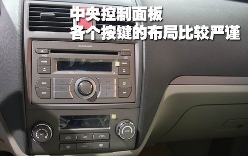 帝豪EC718-RV的中央控制面板的整體做工與以往車(chē)型相比,都有很大提升。從圖中可以看到,這款車(chē)配備了DVD音響、大尺寸液晶顯示屏和自動(dòng)恒溫空調(diào),舒適性、功能性配置都非常齊全。