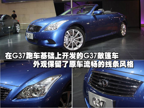 本次廣州車(chē)展上英菲尼迪攜旗下的跑車(chē)型SUV FX50、FX35,豪華運(yùn)動(dòng)型G37雙門(mén)跑車(chē)和G37轎車(chē),高端豪華轎車(chē)M35及轎跑型豪華Crossover EX35等多款明星車(chē)型驚艷亮相。同時(shí),英菲尼迪正式發(fā)布了其全新車(chē)型G37硬頂敞篷跑車(chē)。