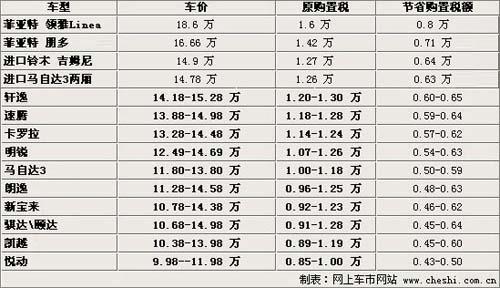 二.售價(jià)20萬元以下熱銷車型 09年購置稅優(yōu)惠金額
