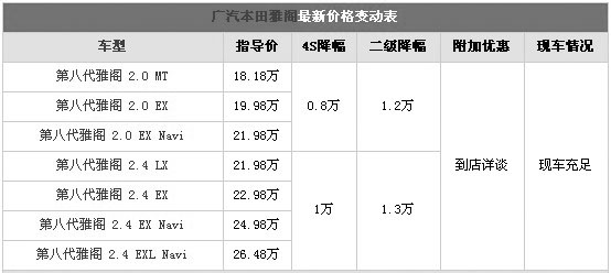 日前車天下汽車網(wǎng)記者從廣本4S店了解到,雅閣系列的車型優(yōu)惠幅度在8000-1萬元之間,不過在二級市場上,2.0L優(yōu)惠1.2萬,2.4L最高優(yōu)惠已經(jīng)達到了1.3萬,其中2.0L手動基本型最低僅為16.98萬,關(guān)注該車的消費者可咨詢該經(jīng)銷商。