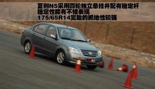 這項測試也可稱之為“麋鹿測試”,可以檢驗車輛回避障礙的能力。對于我們進行測試的車輛來說,60km/h的通過速度基本已經(jīng)達到極限。夏利N5采用四輪獨立懸掛,能夠提供有效的后段支撐力,并且配備了穩(wěn)定桿,能夠使車輛保持在穩(wěn)定的行駛路線。另外,夏利N5配備175/65R14的寬胎,緊急并線時表現(xiàn)的抓地力也非常不錯。