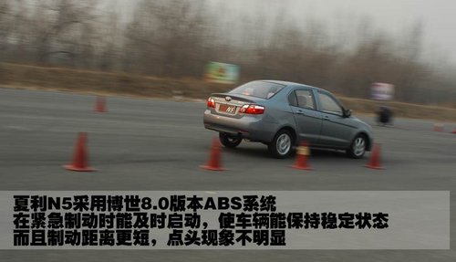 最后進行的是緊急制動項目,主要考核車輛在緊急制動時表現(xiàn)出的穩(wěn)定性,以及車輛剎車的有效距離。由于緊急制動時,三款測試車輛的時速各不相同,所以結(jié)果也會有所差別。夏利N5測試時的時速比較高,達到了近90km/h的速度,但這款車的制動距離仍然保持在可控范圍之內(nèi),而且點頭現(xiàn)象也并不明顯。另外,夏利N5配備的博世8.0版本ABS系統(tǒng),在緊急制動時能及時啟動,使車身保持在穩(wěn)定狀態(tài)。