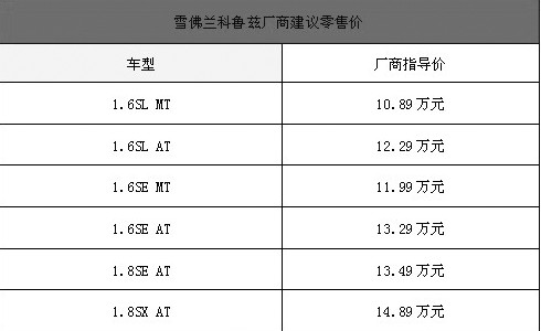 2009年4月9日,上海通用汽車(chē)公布了倍受關(guān)注的新生代性能中級(jí)車(chē)雪佛蘭科魯茲的售價(jià)。雪佛蘭科魯茲此次共有1.6L和1.8L兩款排量六種不同配置的車(chē)型,配備五速手動(dòng)和S6六速手自一體變速箱,并有六種車(chē)身顏色可供選擇,最終價(jià)格區(qū)間定為10.89-14.89萬(wàn)元。即日起全國(guó)各地的雪佛蘭經(jīng)銷(xiāo)商店開(kāi)始接受預(yù)訂。