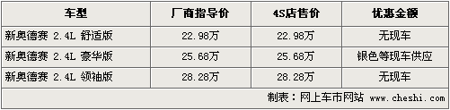 據(jù)廣汽本田4S店銷售人員介紹,新奧德賽訂單一直在持續(xù)增加,現(xiàn)無任何優(yōu)惠。店內(nèi)現(xiàn)有2.4L豪華版部分現(xiàn)車供應(yīng),其它車型顏色并不齊全需要預(yù)定,預(yù)定訂金為1000元,1月初左右就可以提到車。如需了解購車詳情,請咨詢當(dāng)?shù)亟?jīng)銷商處。北京地區(qū)各4S店由于訂單不同,各店銷售的現(xiàn)車顏色有所不同。