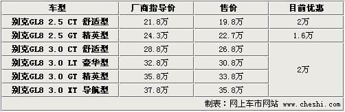 據(jù)4S店銷(xiāo)售人員介紹:目前別克GL8全系大部分車(chē)型可優(yōu)惠2萬(wàn)元,僅有2.5升精英型優(yōu)惠1.6萬(wàn)元。目前2.5排量車(chē)型2款均有現(xiàn)車(chē),但顏色并不齊全,主要有銀色及藍(lán)色。3.0升車(chē)型無(wú)現(xiàn)車(chē),預(yù)定需等2-3周時(shí)間,優(yōu)惠也可到2萬(wàn)元。目前GL8系列車(chē)型經(jīng)過(guò)優(yōu)惠后,最低售價(jià)不足20萬(wàn)元。