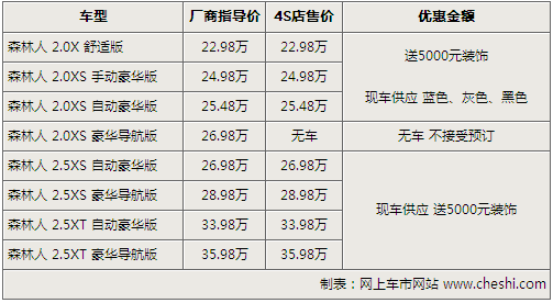 相比11月初的加價銷售,目前購買斯巴魯森林人店內(nèi)可贈送價值5000元的裝飾,其中包括了倒車?yán)走_(dá),尾喉,腳墊,2年道路救援卡等等,而在價格方面沒有優(yōu)惠幅度,F(xiàn)車方面,2.0豪華版,2.5豪華版有藍(lán)色、灰色、黑色、銀色等現(xiàn)車供應(yīng),可供挑選的空間還是很大的。