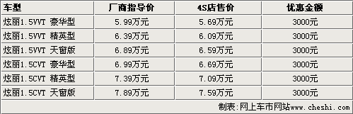 據(jù)長城汽車4S店銷售人員介紹,炫麗1.5L在元旦前可以優(yōu)惠3000元,并贈送3000元的禮包。但元旦之后,炫麗的優(yōu)惠幅度有所減少,目前購買1.5L車型只能優(yōu)惠3000元現(xiàn)金。另外,炫麗天窗版一直都沒有現(xiàn)車銷售,預(yù)訂需要等1個月左右。