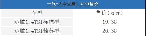 售19.38-20.38萬 一汽大眾邁騰1.4TSI上市
