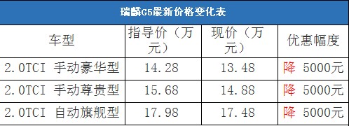 瑞麒G5:自主中型車新標(biāo)桿,上市即降5000元