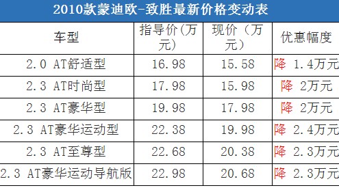 近日,編輯從長(zhǎng)安福特北京綜合經(jīng)銷(xiāo)商處了解到,蒙迪歐-致勝的現(xiàn)車(chē)比較充足,目前購(gòu)車(chē)最高可以優(yōu)惠2.4萬(wàn)元現(xiàn)金,與去年末的降價(jià)幅度持平。據(jù)經(jīng)銷(xiāo)商透露,消費(fèi)者要想以這個(gè)價(jià)格提車(chē),需要在店內(nèi)做購(gòu)車(chē)一條龍服務(wù),其中車(chē)輛四項(xiàng)基本保險(xiǎn)的折扣為9折。以下是蒙迪歐-致勝最新價(jià)格變化表: