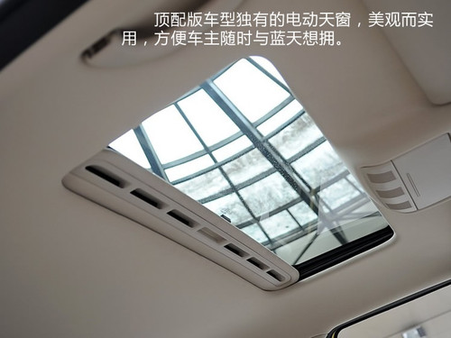 頂配車(chē)型還裝有電動(dòng)天窗,只要您愿意,隨時(shí)可以打開(kāi)天窗享受頭頂?shù)哪瞧{(lán)天。