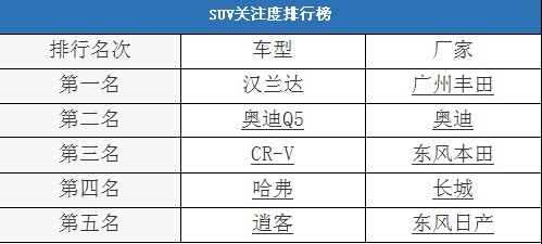 今天我們就以SUV為關(guān)注焦點(diǎn),搜集了網(wǎng)友點(diǎn)擊最高的5款SUV。下面就一起來看一下。
