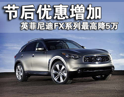 筆者了解,目前英菲尼迪FX系列主要銷售車型為FX35超越版,標(biāo)準(zhǔn)版現(xiàn)車較少,需要預(yù)訂,頂配車型也要3月份左右才能提車。相比節(jié)前的優(yōu)惠幅度,目前一般金色、白色黑色等現(xiàn)車可優(yōu)惠4萬元,少量庫存車最高可優(yōu)惠5萬元。銷售人員介紹,F(xiàn)X50S為運動版,和FX30相比,除了在動力排量上的差異外,還增加了DVD娛樂系統(tǒng)等高端配置。