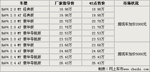 一汽豐田RAV4 提現(xiàn)車加價5000元